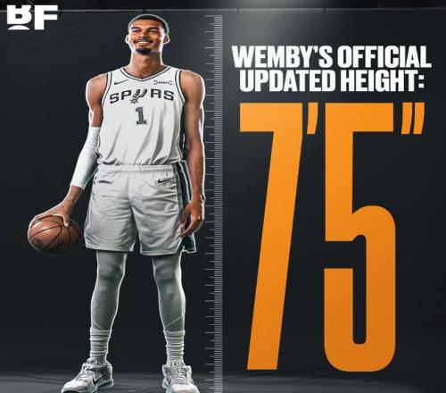 短短9天又长2厘米文班亚马已2.26米美媒:NBA官网更新到7尺5