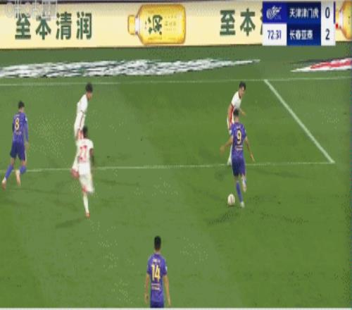 补时阶段,贺一然解围失误,津门虎扳回一城1-2长春亚泰。
