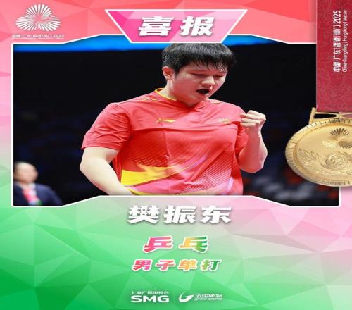北京时间11月16日,第十五届全运会乒乓球男子单打金牌赛,上海选手樊振东4比1击败海南选手林诗栋,为上海代表团再添一金!