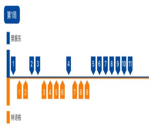 第一局比赛,樊振东有些慢热,林诗栋一度以9比4领先。不过小胖及时调整,连得7分,11比9逆转率先取得首局胜利。