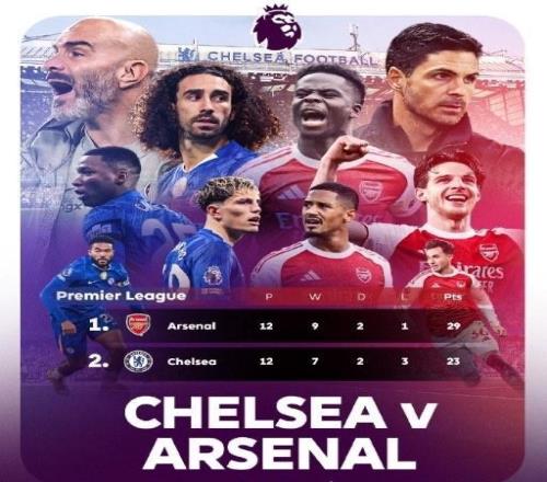 北京时间12月1日00:30,英超第13轮焦点战,领头羊阿森纳客访切尔西。两队公布首发,枪手派上埃泽、赖斯,蓝军祭出埃斯特旺、若昂·佩德罗。枪手暂以29分领跑联赛,蓝军23分第三。 阿森纳首发(433):拉亚/廷伯、克里斯蒂安·莫斯科拉、因卡皮耶、卡拉菲奥里/埃泽、苏维门迪、赖斯/萨卡、梅里诺、马丁内利 切尔西首发(4231):罗伯特·桑切斯/古斯托、韦斯利·福法纳、查洛巴、库库雷利亚/里斯·詹姆斯、凯塞多/埃斯特旺、恩佐、内托/若昂·佩德罗