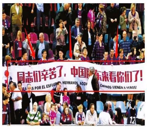 面对中国股东的热情,埃瓦尔官方盛情邀请一批股东进场观赛,这批球迷在现场举出了那副著名的横幅:“同志们辛苦了,中国股东来看你们了!”