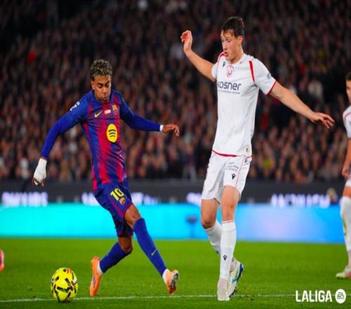 最终,总身价11.1亿的巴萨2-0战胜奥萨苏纳,迎来联赛7连胜。本轮先赛的情况下,巴萨将积分榜上的领先优势扩大到了7分。