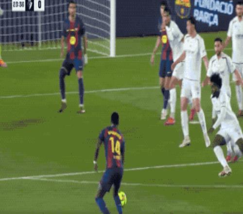 第14分钟,亚马尔原地摆脱送出妙传,费兰·托雷斯拍马赶到,第一时间射门,皮球稍稍高出。
