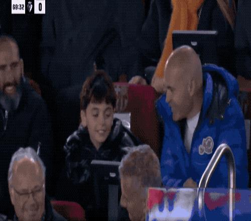进球后的拉菲尼亚做出标志性的庆祝动作,看台上的伊涅斯塔也终于露出了笑容。