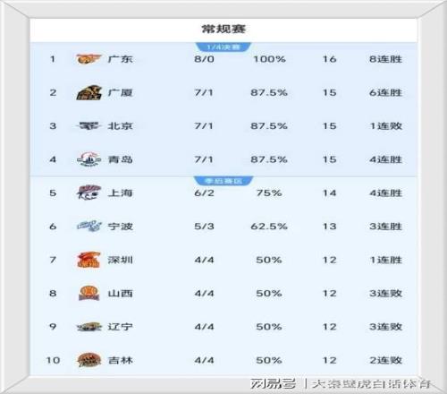 ①、豪取8连胜的广东男篮一枝独秀,反超上海队登上榜首宝座;
