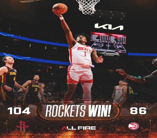 卡佩拉2罚全中,丹尼尔斯抛投得手,谢泼德低位打进,沃克3罚全中还以颜色。申京篮下打铁,史密斯暴扣,谢泼德失误。科洛克暴扣,申京大帽沃克,杜兰特轰进远投,还助攻奥科吉外线取分,火箭重新领先22分锁定大局。丹尼尔斯单打不中,距离终场仅剩2分09秒,斯奈德换上大部分板凳席末端的球员选择提前弃子认负,比赛就此失去了悬念。基斯珀特中投得分,克雷伊奇抛投打进,时间走完。最终,火箭以104比86完胜对手,老鹰的4连胜就此被终结。
