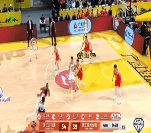 第三节,上来浙江进攻依旧低迷,广厦孙铭徽、胡金秋、桑普森相继得分领先至17分,浙江约克三分止血,紧跟广厦反击胡金秋暴扣回应,后半节上来双方持续进攻打铁,随后浙江陆文博、琼斯相继三分追至10分,节末收尾广厦塔克、赵嘉义立刻回应再度拉大分差,三节结束,广厦54-39浙江。