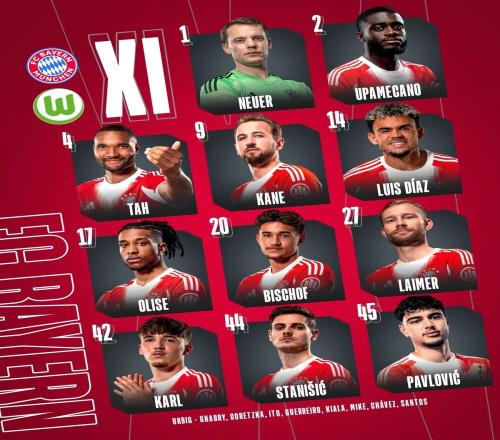 北京时间1月12日凌晨00:30,拜仁将迎来德甲第16轮主场对阵沃尔夫斯堡的比赛,目前,双方的首发阵容和替补名单已经公布,随后拜仁官方公布了球队的伤情信息。