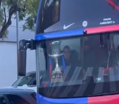根据科贝电台巴萨跟队记者Víctor Navarro的最新报道,西班牙超级杯冠军奖杯已经跟随巴萨的球队大巴抵达巴塞罗那。据报道,西班牙超级杯冠军奖杯已经跟随巴萨的球队大巴抵达巴