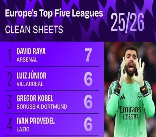 数据统计机构Squawka统计出本赛季截至目前五大联赛门将零封榜,戴维-拉亚7次零封居首。本赛季截至目前五大联赛门将零封榜1-阿森纳 戴维-拉亚(出场11次,完成7次零封)2-比利亚雷